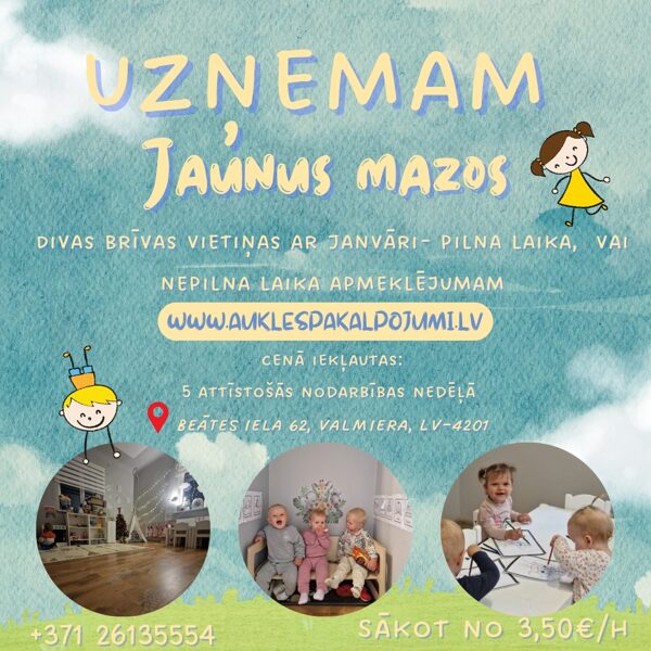 SIA MADISON sniedz bērnu uzraudzības pakalpojumus bērniem (Aukļu sertifikāts - Reģistrācijas numurs 3 44 1 06807)Ir (B) kategorijas tiesības,pirmās palīdzības apliecība, aukļu sertifikāts ( sadarbojoties